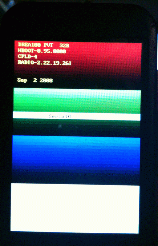 - Hoooooo le hboot 0.95.0000 tout pas beau !! Appelé "rainbow screen" sur les forums XDA, utile si vous avez un problème.