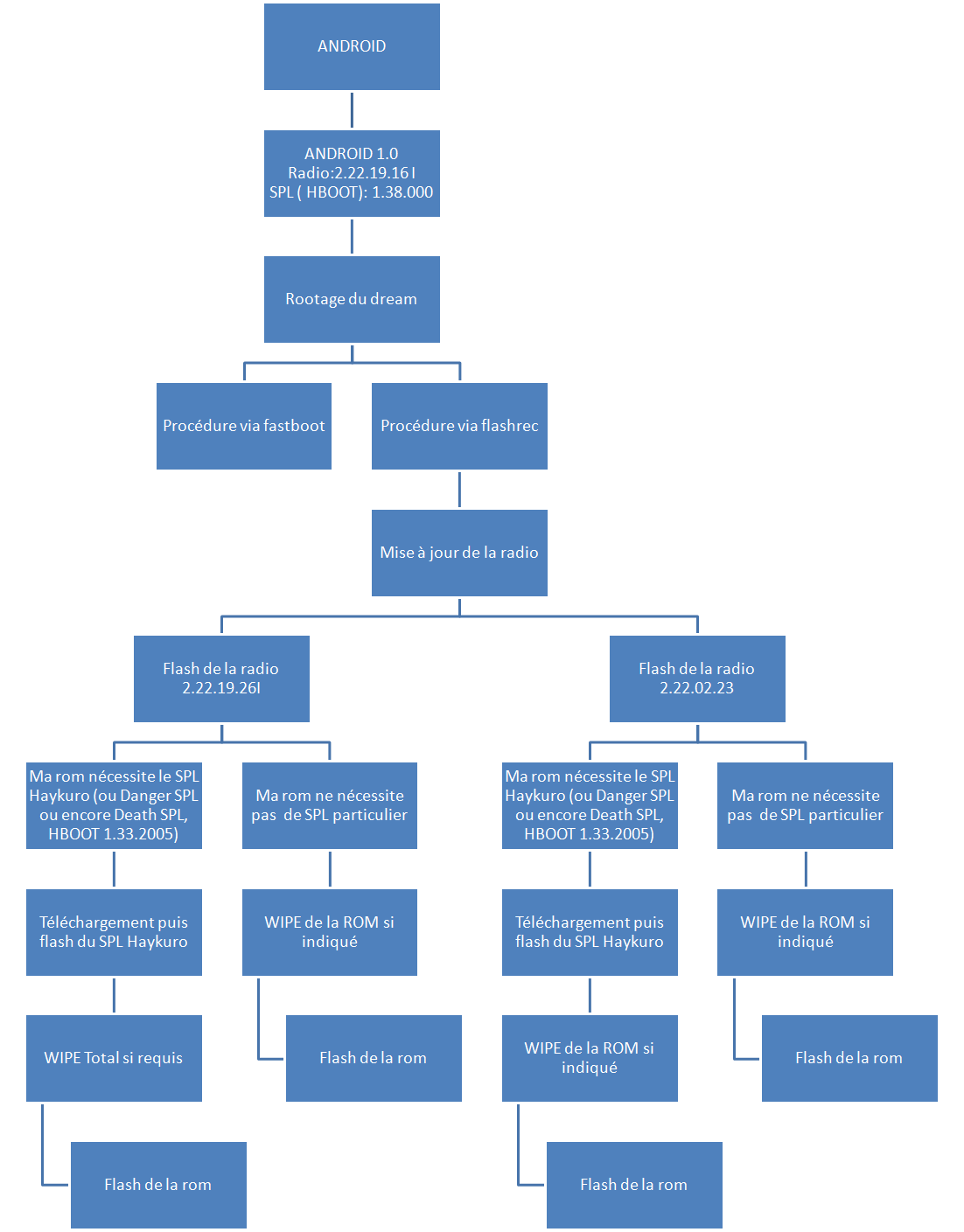- Cas 2 : tu as un Dream avec la radio en version 2.22.19.26I qui est sous Android 1.1 et tu souhaites installer le SPL Haykuro pour pouvoir mettre les Roms que tu souhaites.