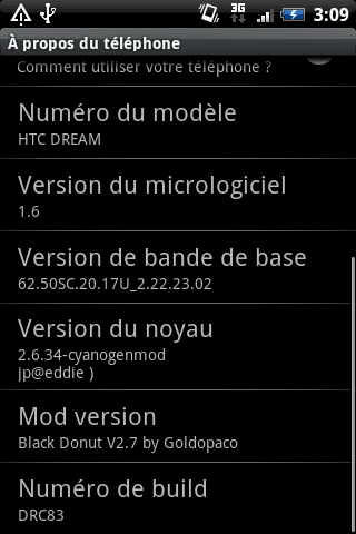 (voir un aperçu). Tu auras les informations nécessaires afin de savoir ce qui est installé sur ton Dream. Utile pour ceux qui ont acheté un HTC Dream d'occasion.